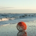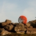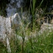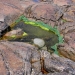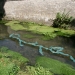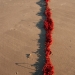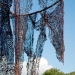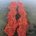 Gebreid met groen kunststof raffia. Neergelegd op de rotsen van de Ierse westkust waar het een geheel vormt met het 'echte' zeewier.